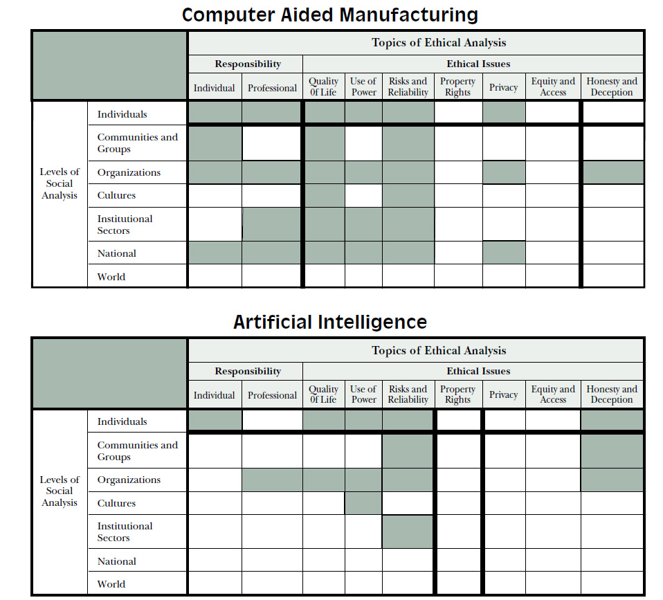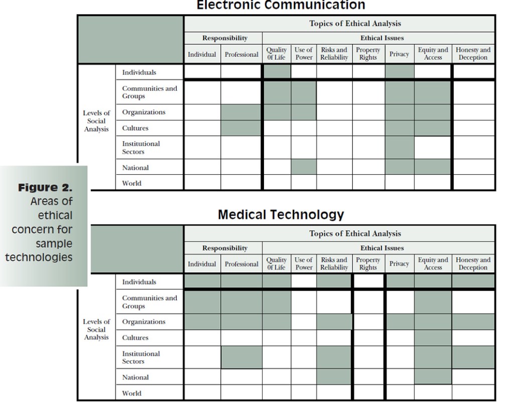 I came across a 1995 paper titled “Computing Consequences : A Framework for Teaching Ethical Computing” written by Chuck Huff and C. Dianne Martin. One of the striking features of it was how prophetic it was in saying that merely increasing the volume or magnitude of technology will not suffice in answering certain key questions of the future. The section below which examines the various areas within technology where ethical concerns need most focus is quite revealing.
