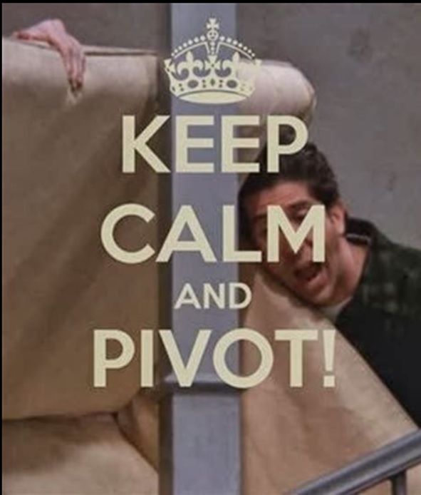 The word Pivot always brings to mind that hilarious scene from the sitcom Friends where Ross, Chandler and Rachel are trying to move a large couch up a narrow staircase. The whole time Ross keeps screaming “Pivot! Pivot! Pivaaat!” to highlight the need to turn as you move as an approach to pass through the corners. And with that, I have perhaps used my first meme and popular culture reference in this entire blog. 😊