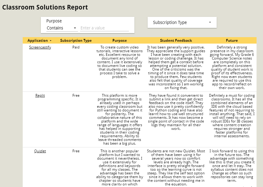 To keep it a bit more interesting to go through I made a quick data studio report instead of having paragraphs of text to go through. The information is categorized by purpose, student feedback and other parameters. I hope to keep adding to this collection as and when I find something more that has had an impact in my classes.