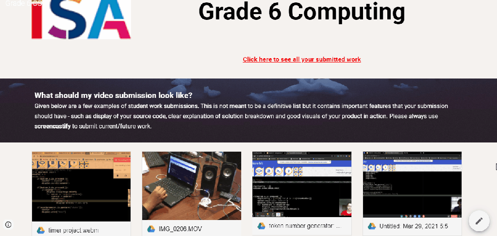 To ensure that the entire year group and me are the same page, literally, I put together a central Google site that has two important features. One, it lists each activity along with links to all the relevant lesson notes/slides/video demos etc. Two, it has a link to each student’s video submission.