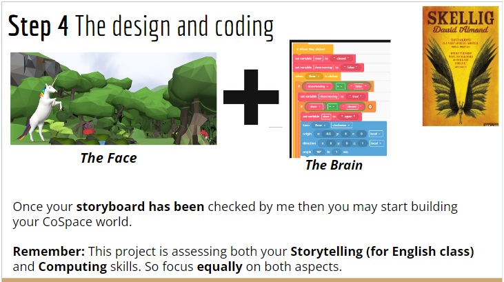 Grade 6 also learnt about Magic Realism in literature. They were reading the novel Skellig by David Almond for this. Given the critical thinking potential of how events in the book could be easily adapted to a virtual reality platform, the groups worked on converting some of the basic concepts of what magic realism is through block based coding.