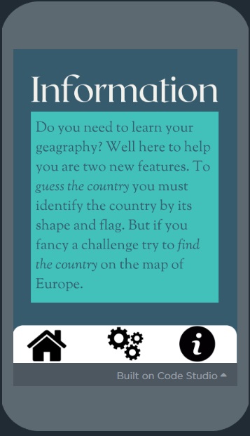 This student decided to blend computing with Geography and designed a prototype to educate learners about European countries. Even though time limits meant a slightly incomplete product the student was still able to capture some user friendly components from this blend.